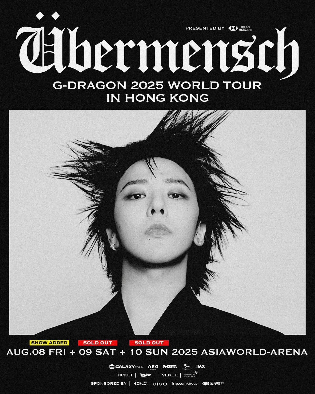 2025年8月8-10日 G-DRAGON 2025 WORLD TOUR [Übermensch] IN HONG KONG, presented by HSBC Life